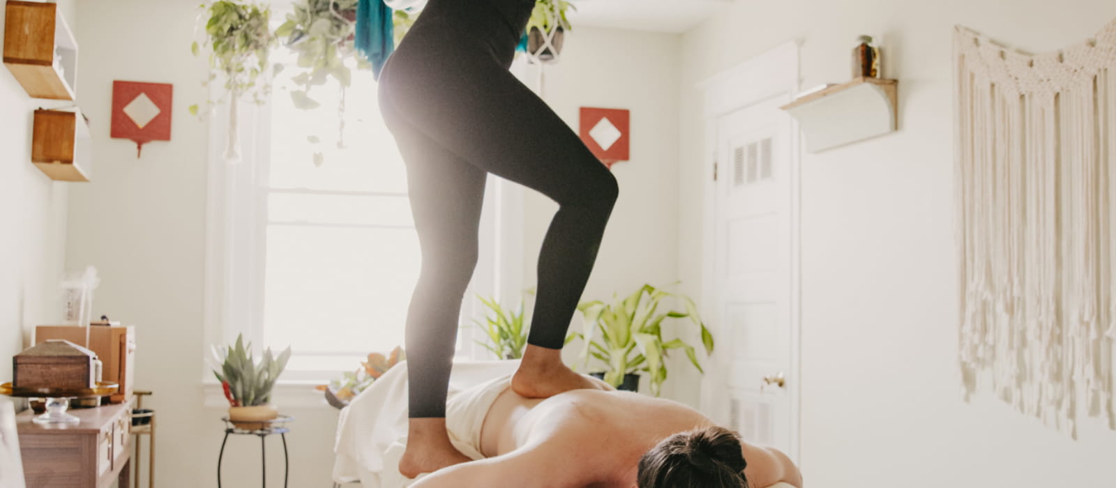 - Techniques may include therapeutic massage, Ashiatsu (barefoot massage), Thai stretching, and cupping therapy.